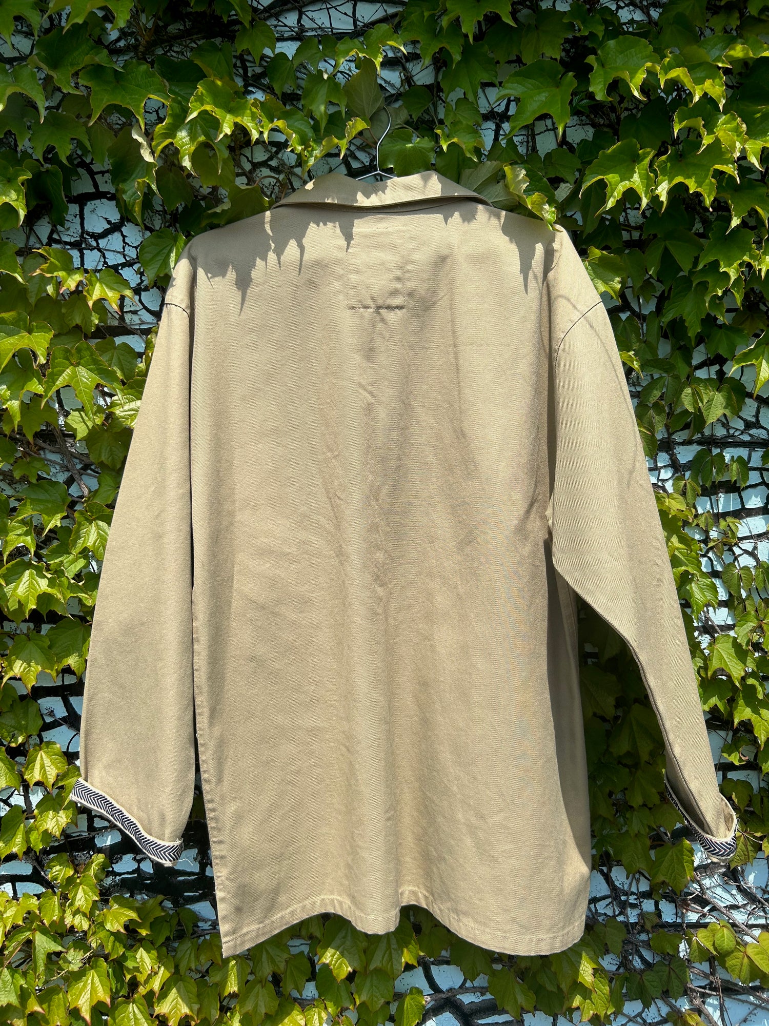 Vintage French sailor work shirt in cotton , collared shirt .Up cycled with large tie dye cotton pocket .Has an inside pocket .